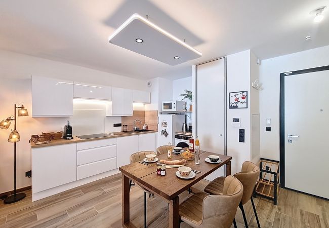 The apartment has a balcony, offering breathtaking views of the snowy slopes. With its two bunk beds and a double sofa bed, it can comfortably accommodate up to four people.