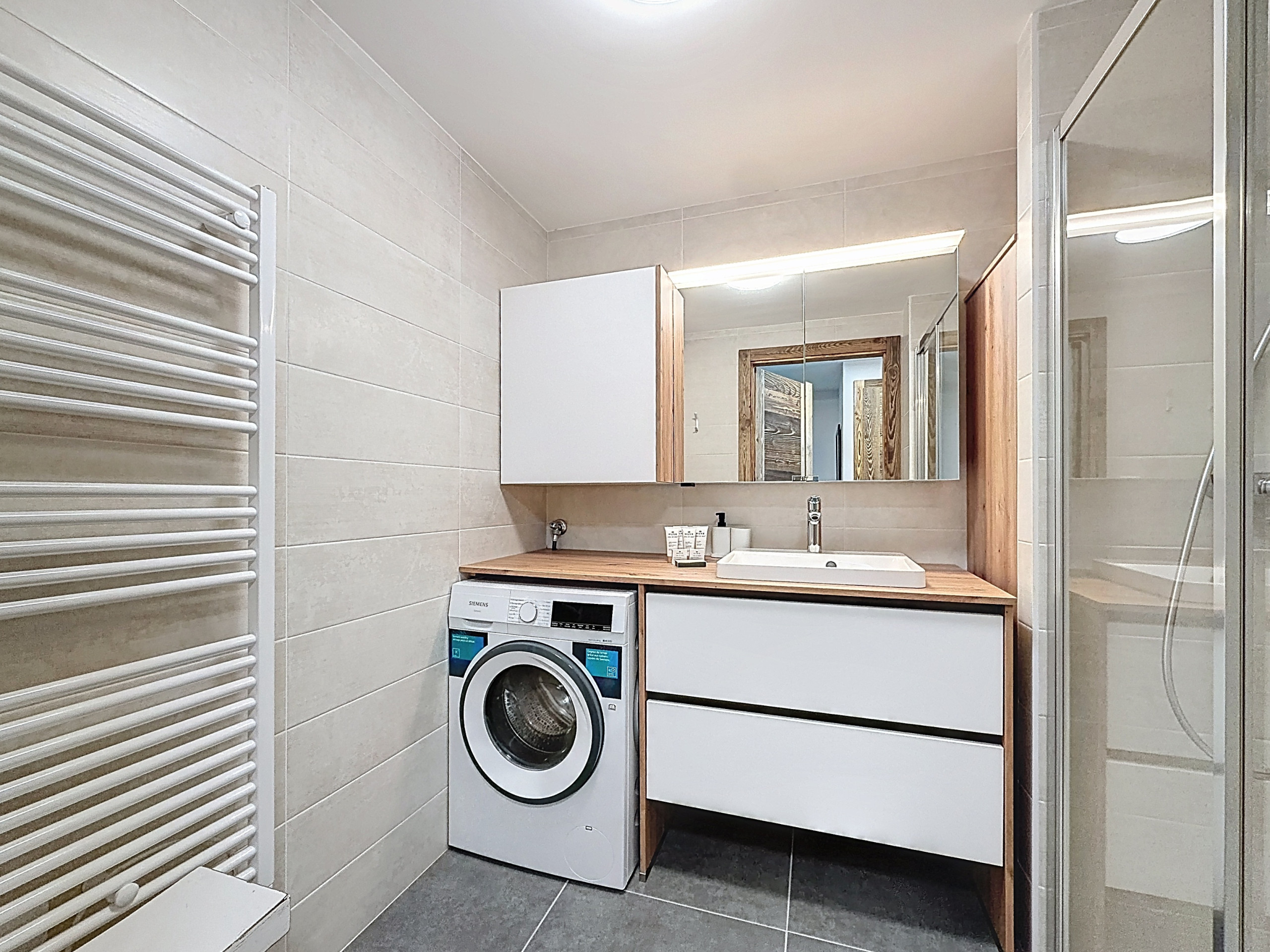 Parking is provided with a private and covered parking space in the same building as well as an outdoor parking space. The apartment also has a balcony offering an unobstructed view of the station. Two shower rooms will provide optimal comfort for all occupants.