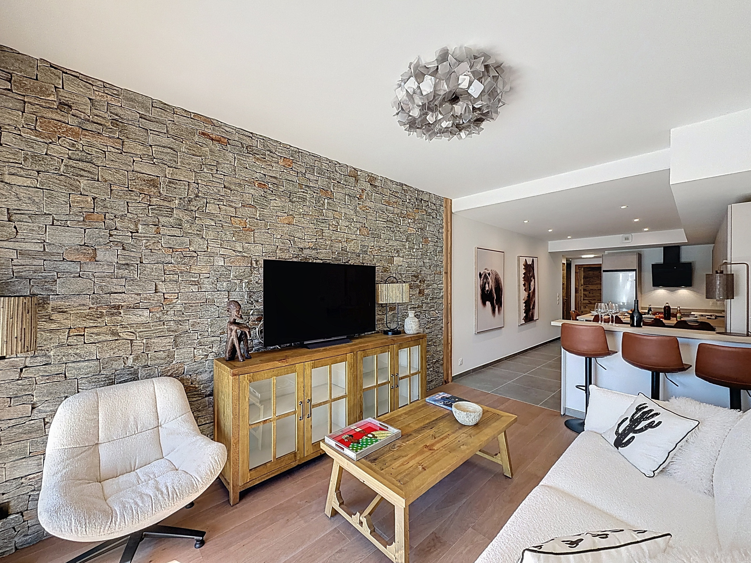 Discover "Le Louro", a modern and elegant apartment located in the heart of Les Gets, perfect for a family or friends' stay. This carefully designed accommodation offers a warm setting for 6 people.
