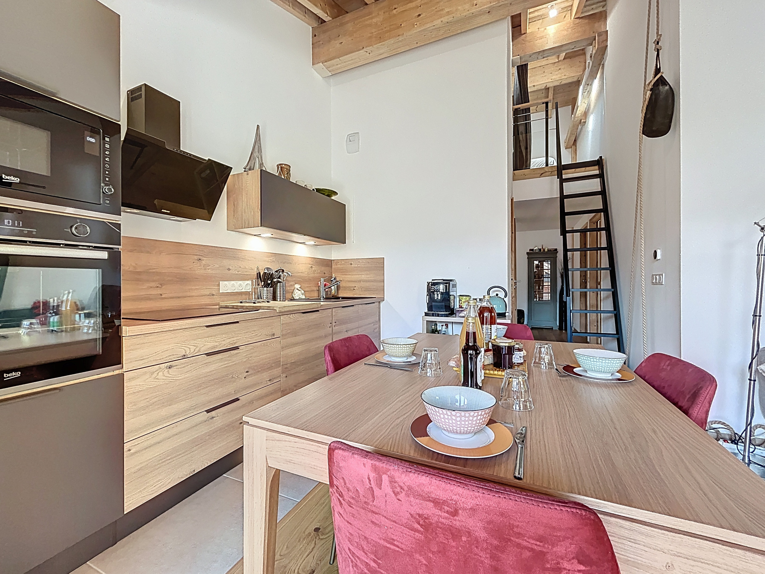 The kitchen, equipped with a refrigerator, a microwave, an oven, a coffee maker, a toaster, and a kettle, allows you to easily prepare delicious homemade meals. You can thus enjoy cozy moments with family or friends.