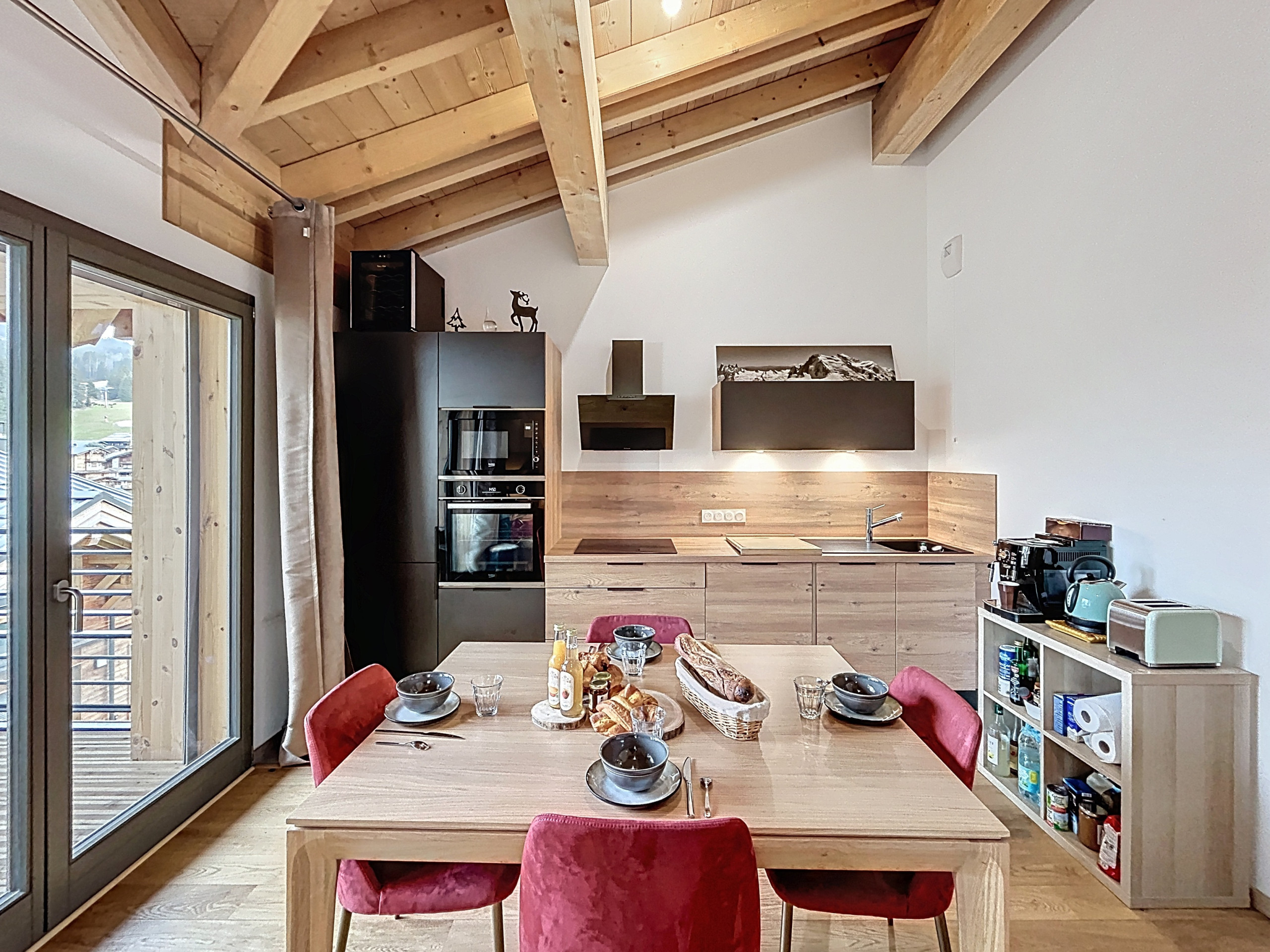 2-bedroom apartment - Les Gets - Close to the centre This apartment in Les Gets, located just steps from the centre, offers a 53 m² space ideal for accommodating up to 4 people. Part of a new residence, it benefits from modern and carefully crafted amenities. Fully furnished and tastefully decorated, it combines comfort and functionality. The main living area is bright, opening onto a modern fully equipped kitchen (oven, hob, refrigerator, dishwasher, etc.) and a friendly dining area. The living room, featuring comfortable sofas and a flat-screen television, opens onto a balcony with mountain views. The modern bathroom is equipped with an Italian-style shower. A ski locker is available in the residence, facilitating winter stays. With its immediate proximity to the centre of Les Gets and ski lifts, this apartment is the ideal pied-à-terre to enjoy the mountains in all seasons.