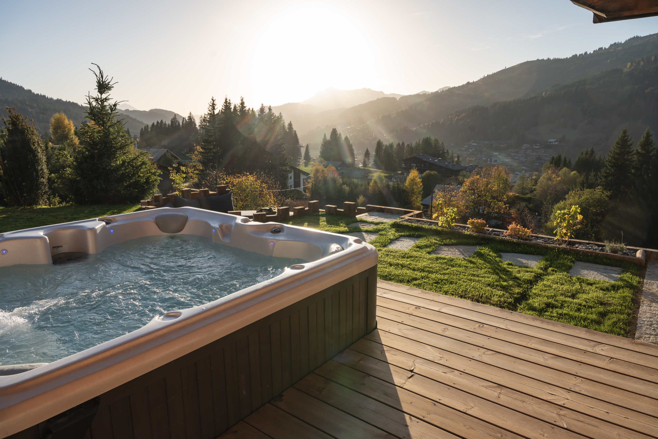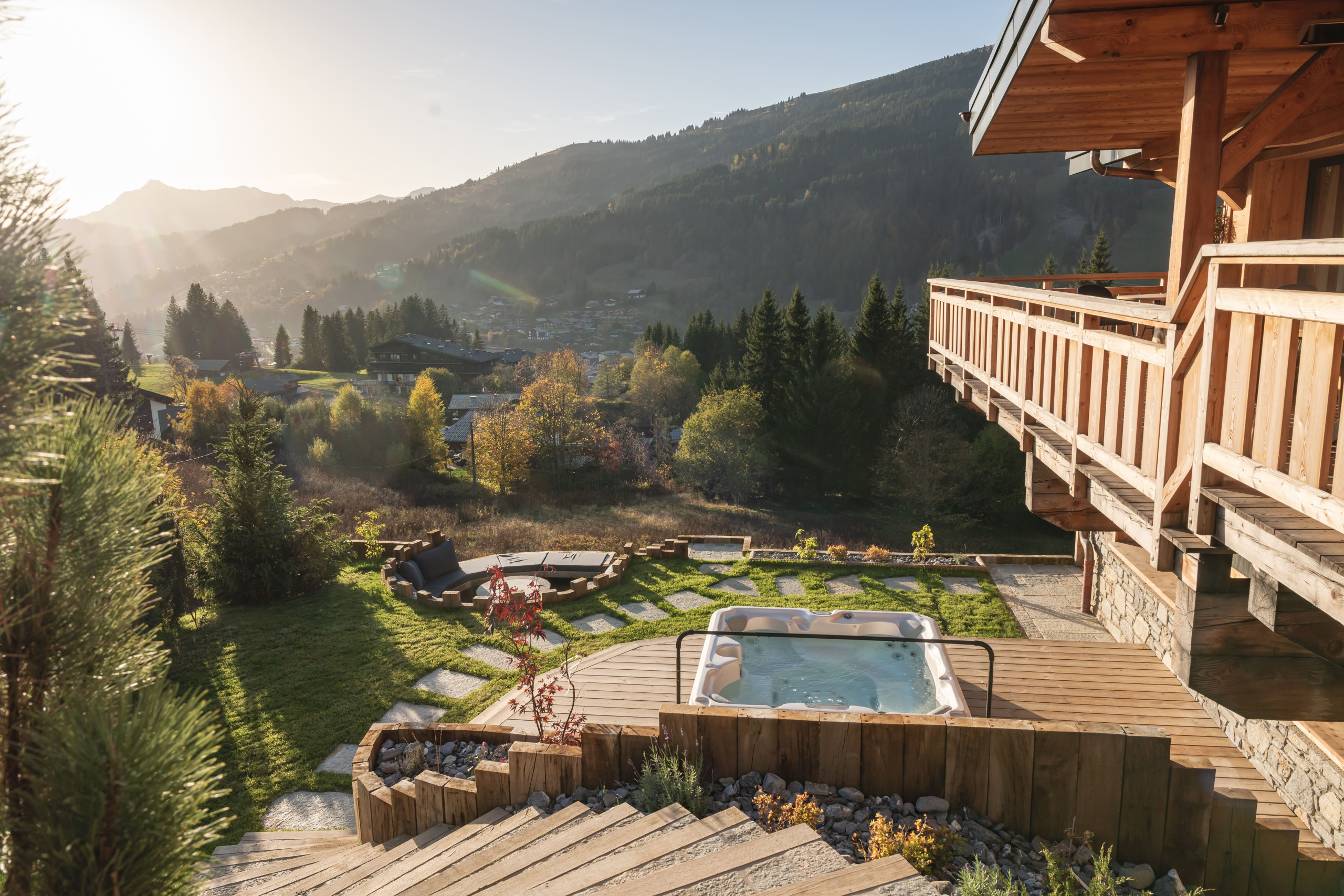 Outside, the sunny terrace is a true haven of relaxation: enjoy a Nordic bath with an unobstructed view of the mountains, or an aperitif spot bathed in the setting sun.