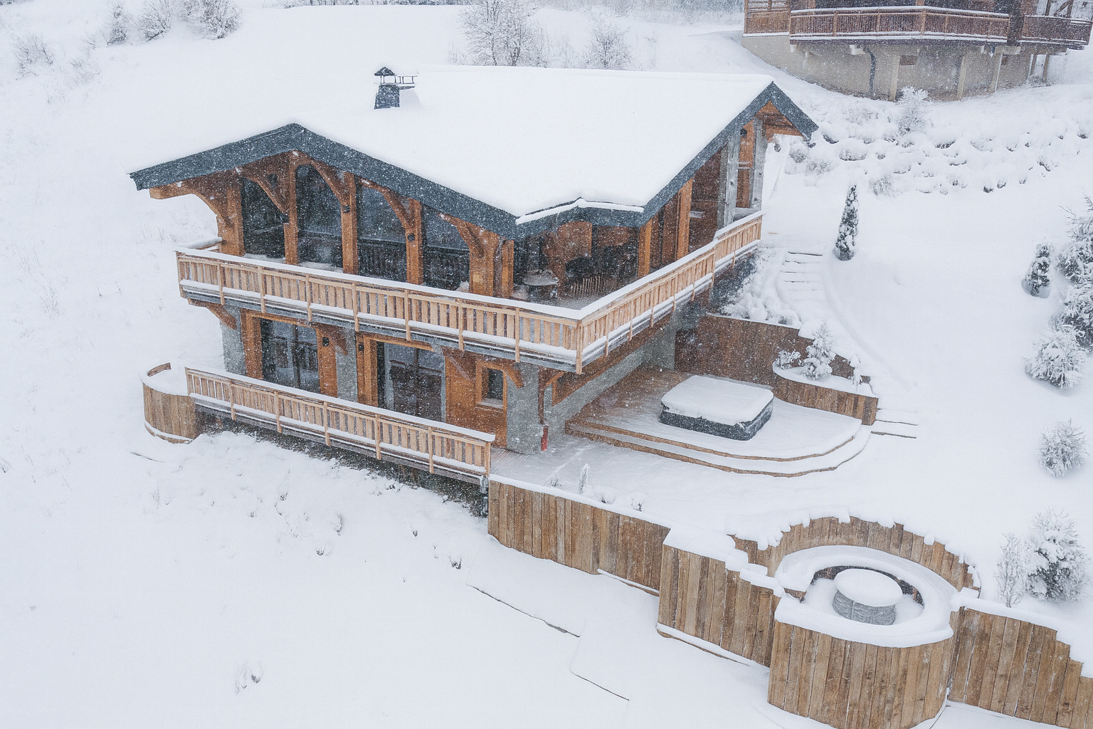The use of high-quality materials in its construction and design ensures optimal comfort. Located just a few dozen metres from the first ski slopes, you can fully enjoy the sensations of skiing. After a day on the slopes, relax in the outdoor jacuzzi or enjoy an aperitif on the sunny terrace, furnished with custom garden furniture, an outdoor fireplace and a sound system.