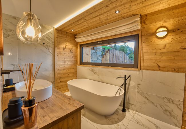 Discover Chalet Léonie, a modern chalet with an alpine atmosphere, located in a quiet area just a stone's throw from the village center of Les Gets and the ski slopes.