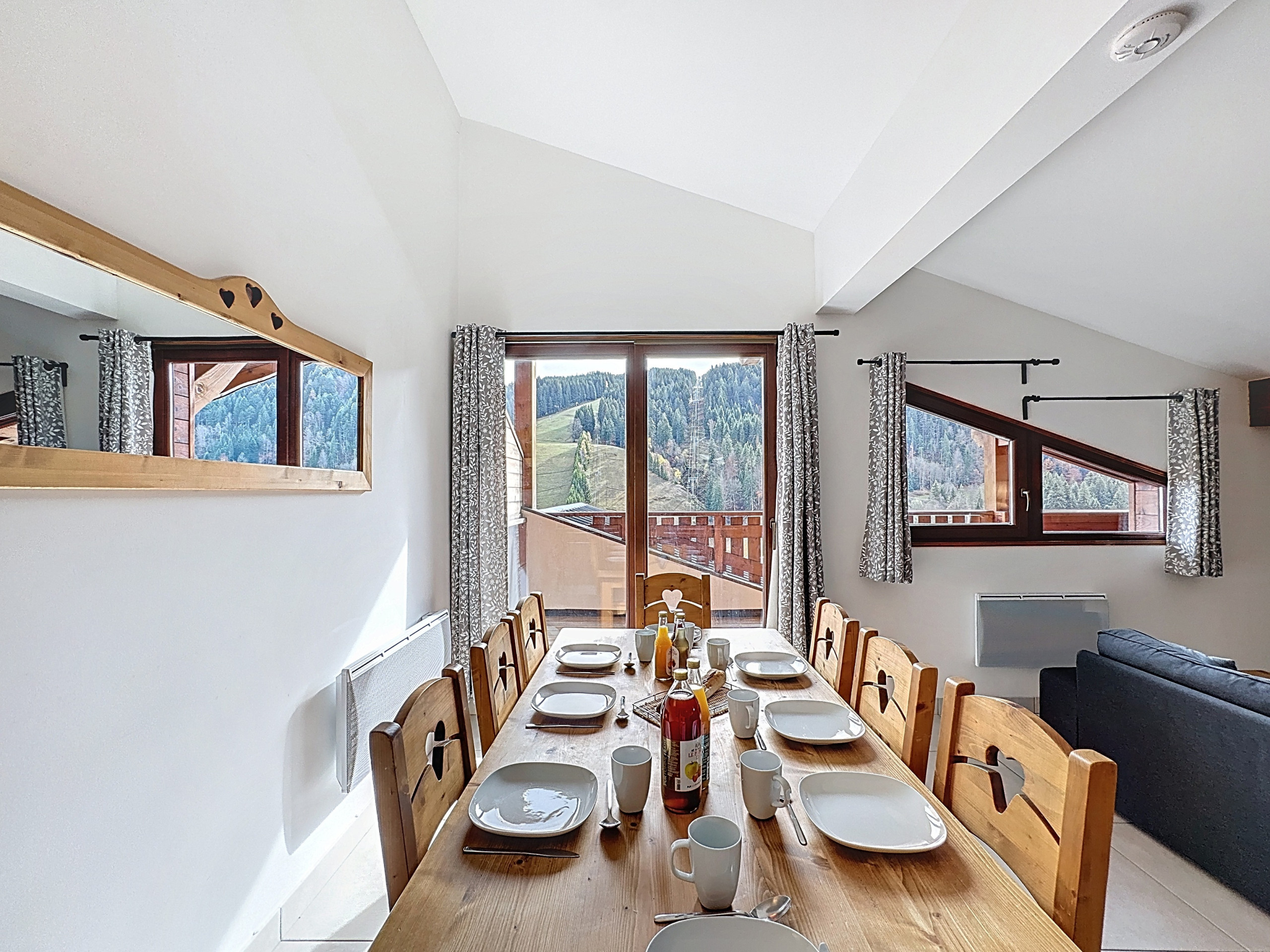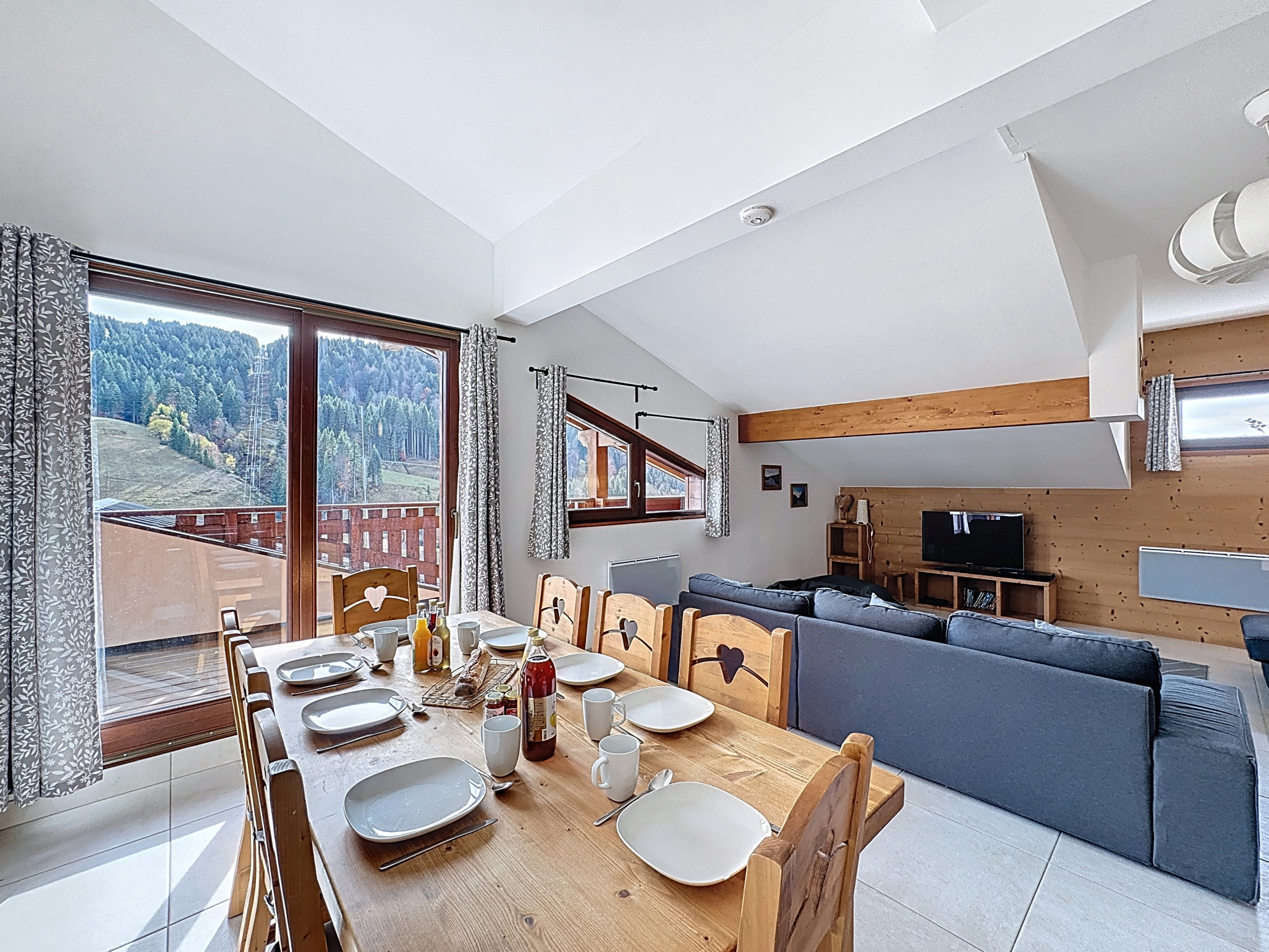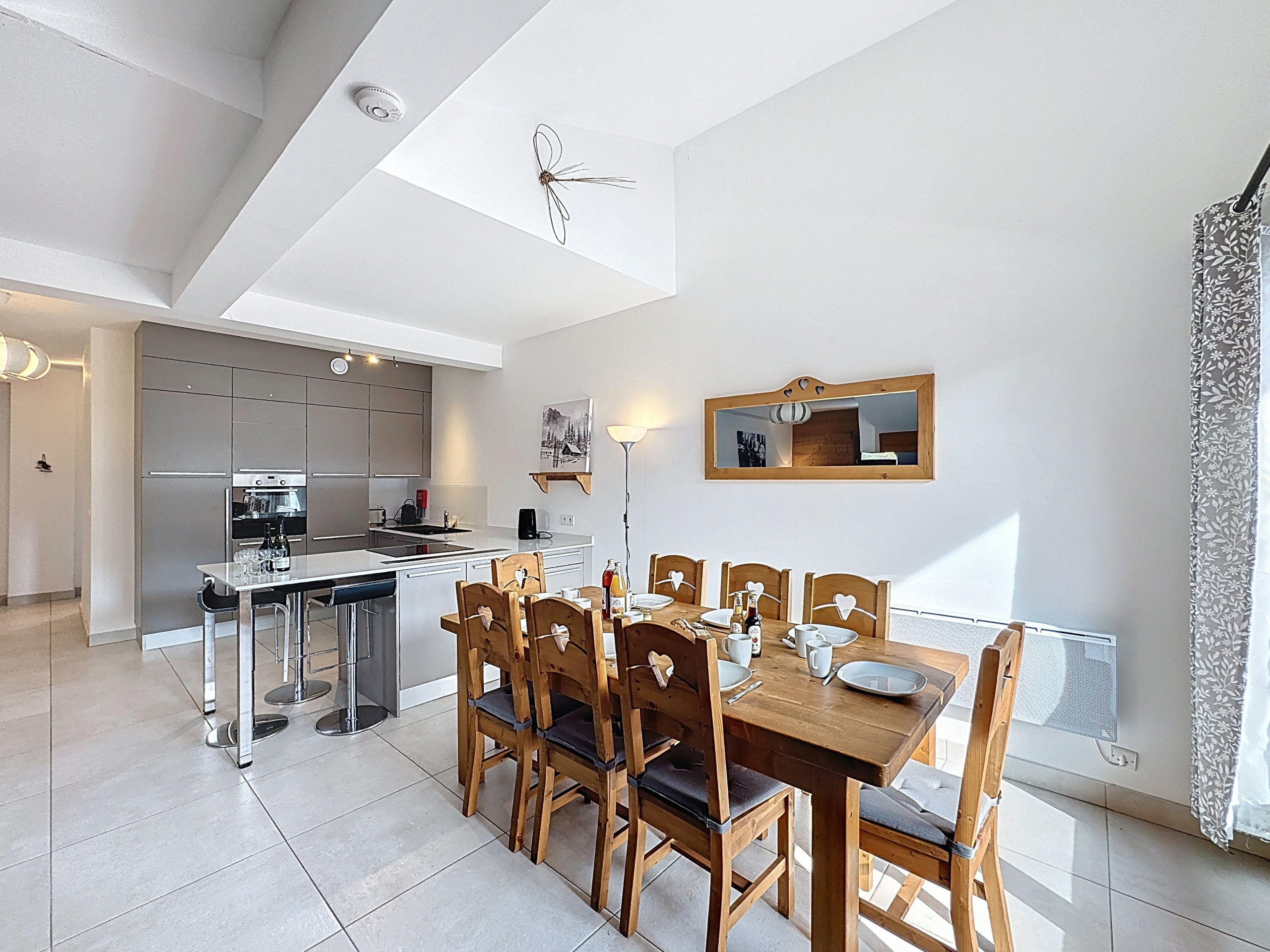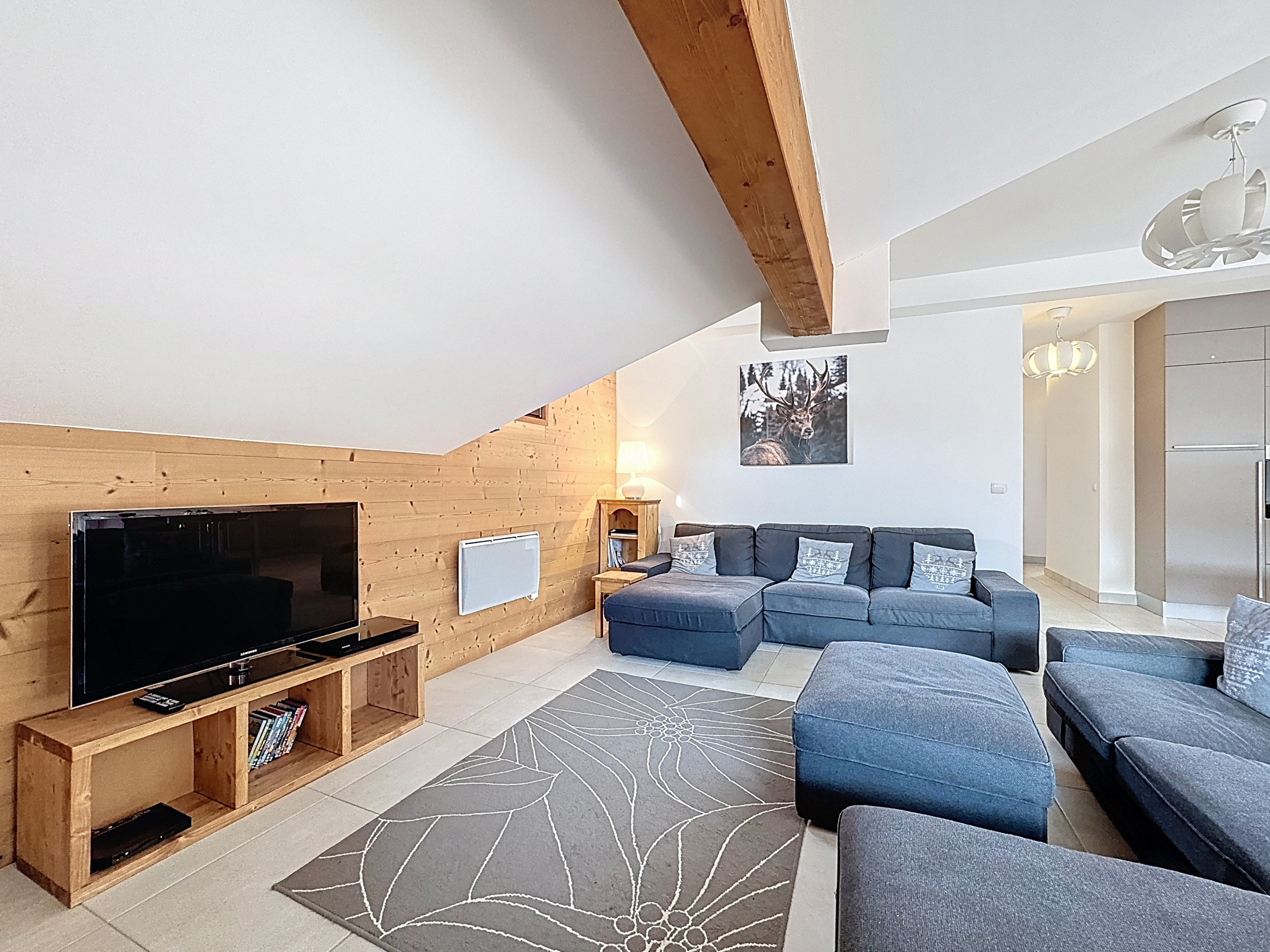 Découvrez cet élégant appartement situé au cœur des Gets. Avec ses 64 m² de surface, ce logement moderne et décoré avec goût vous offre tout le confort nécessaire pour vos vacances à la montagne.