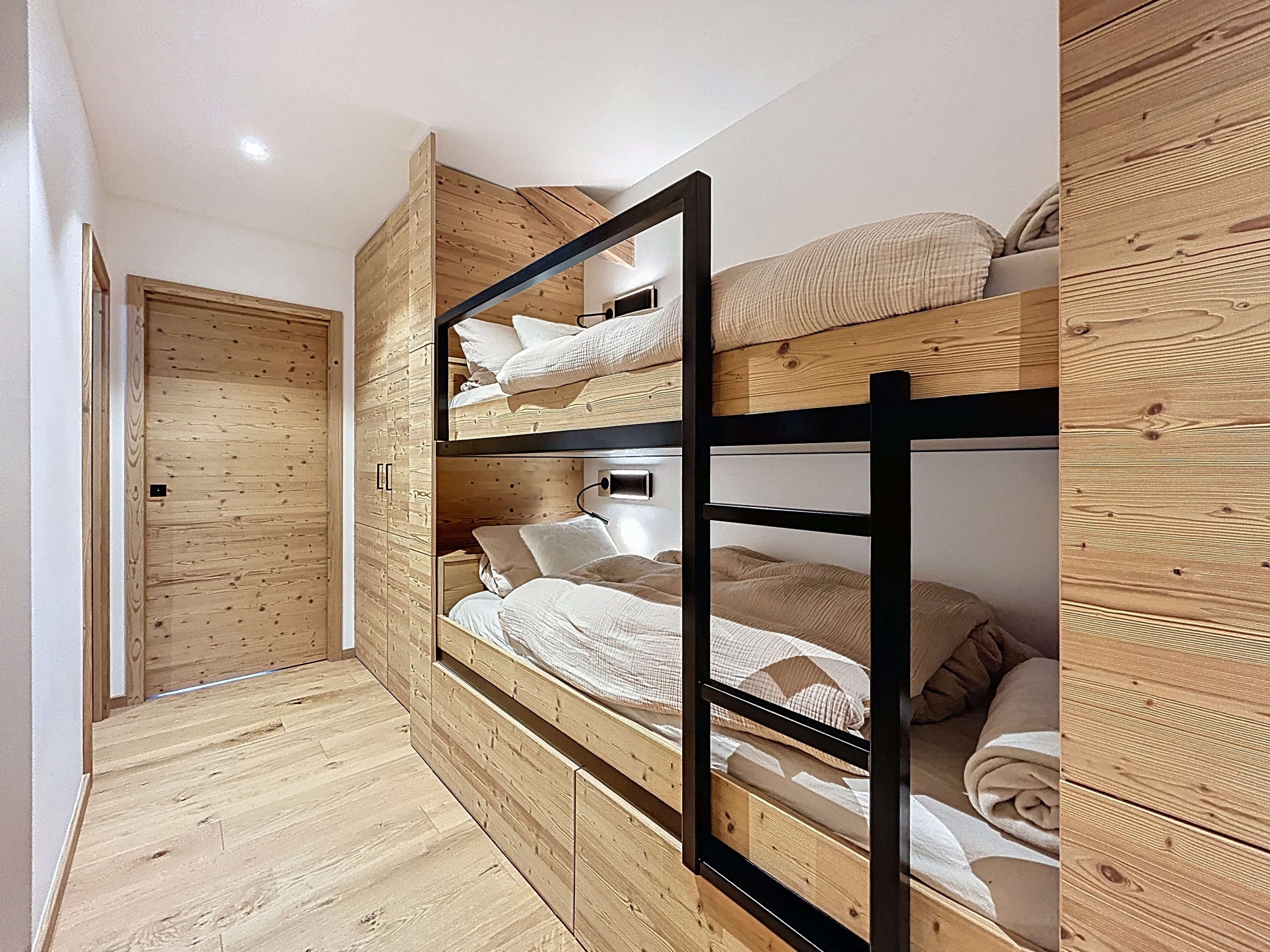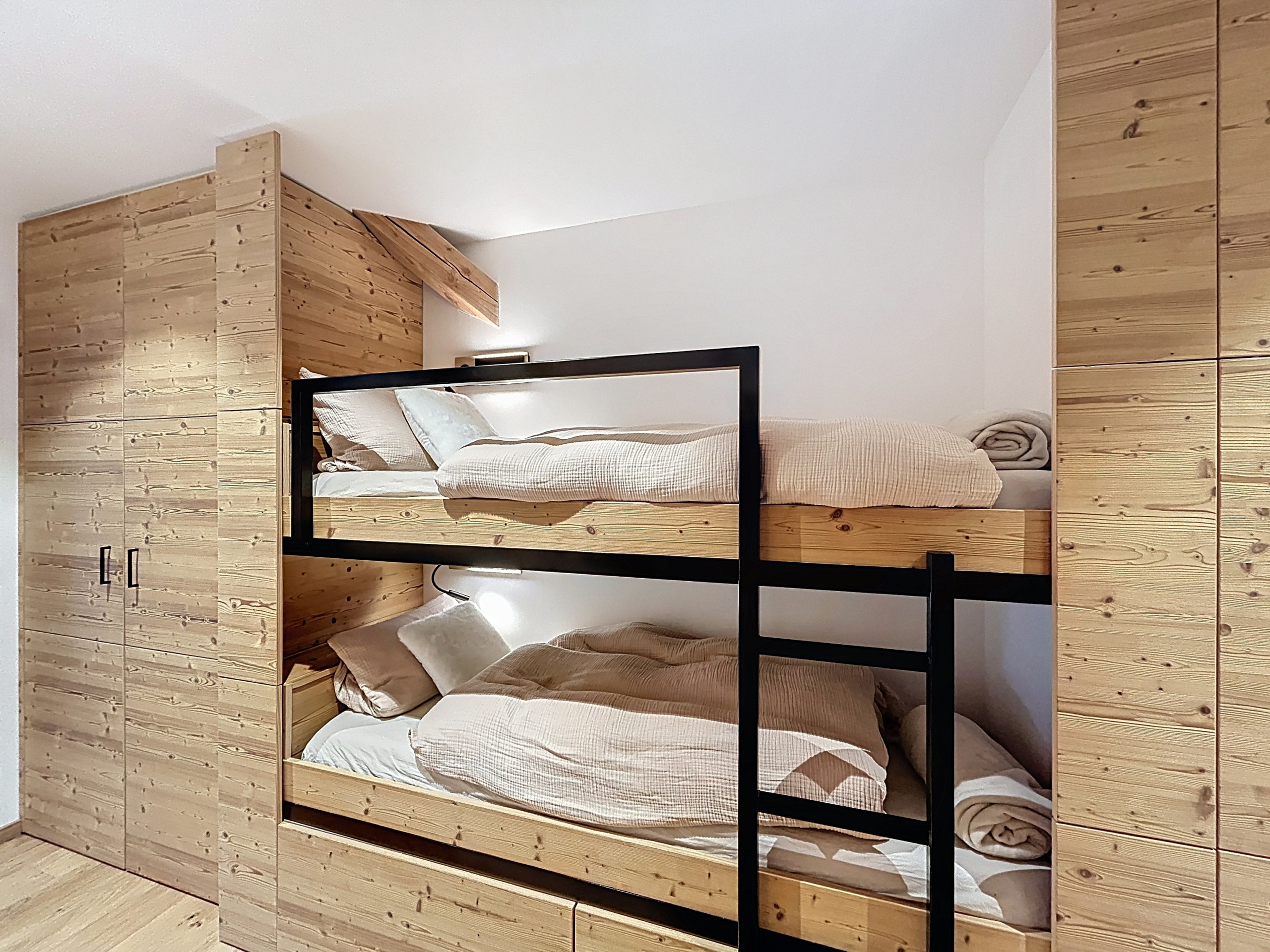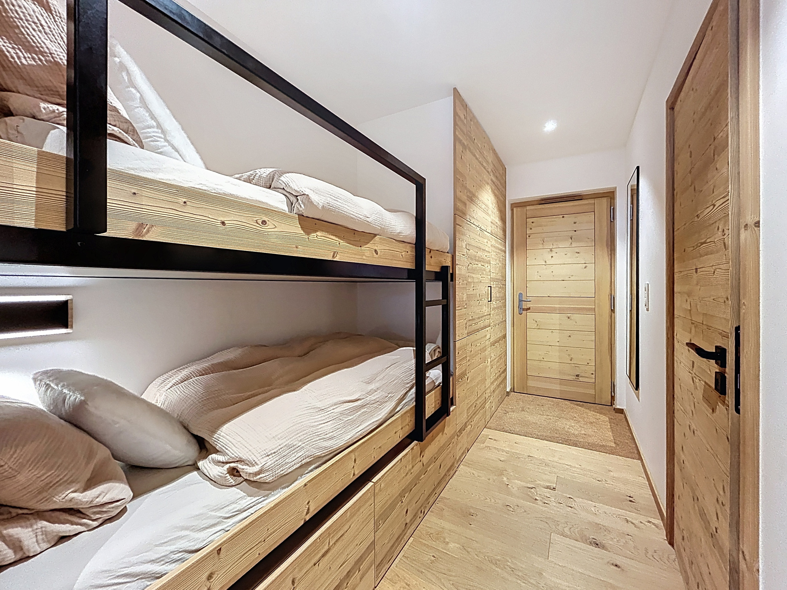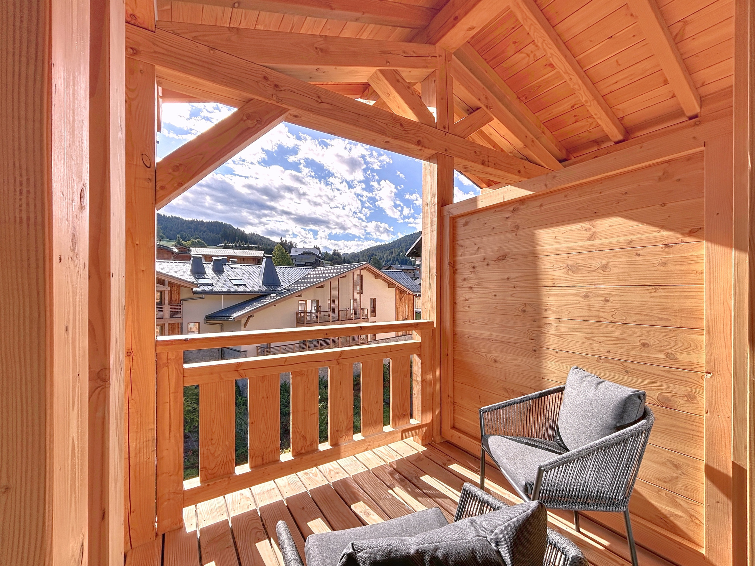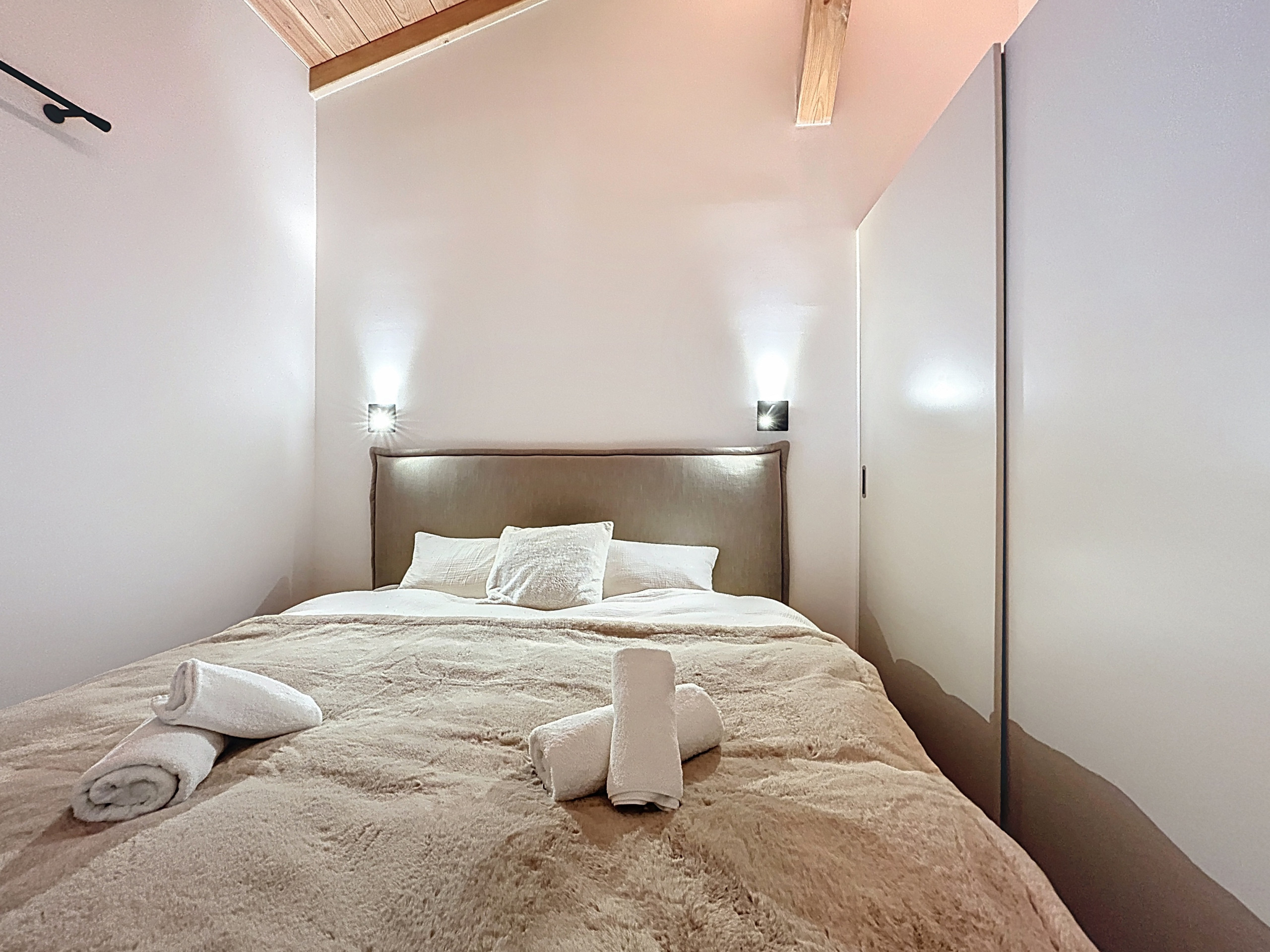 L'appartement dispose d'un balcon, offrant une vue imprenable sur les pentes enneigées. Avec ses deux lits superposés, et un canapé-lit double, il peut accueillir confortablement jusqu'à quatre personnes.