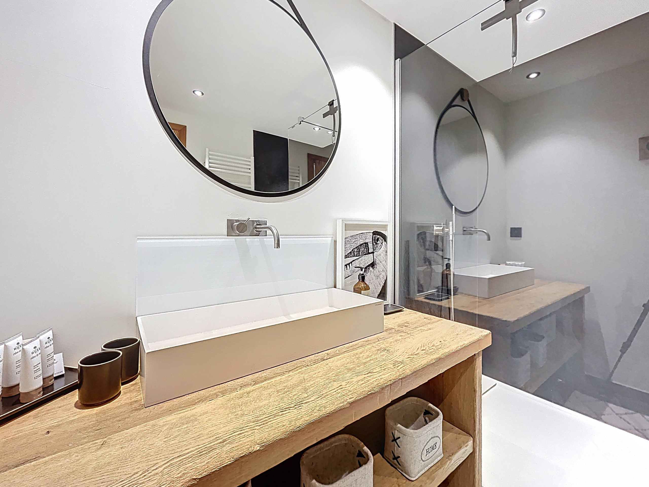 Les équipements haut de gamme incluent une salle TV cocooning, une salle à skis avec chauffe-chaussures, une buanderie équipée (lave-linge et sèche-linge) et une connexion internet haut débit.