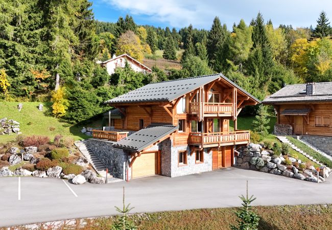 Découvrez le chalet Léonie, un chalet moderne, à l'ambiance alpine, situé dans un quartier calme à deux pas du centre-village des Gets et des pistes de ski.