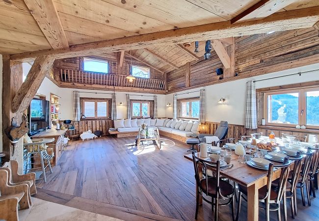 Le chalet est installé sur un vaste terrain privé, offrant un espace rare et paisible pour jouer dans la neige ou simplement admirer le paysage en toute tranquillité. À seulement quelques minutes en voiture du domaine skiable des Gets, il constitue un pied-à-terre idéal pour les amateurs de ski, de raquettes ou de balades hivernales.